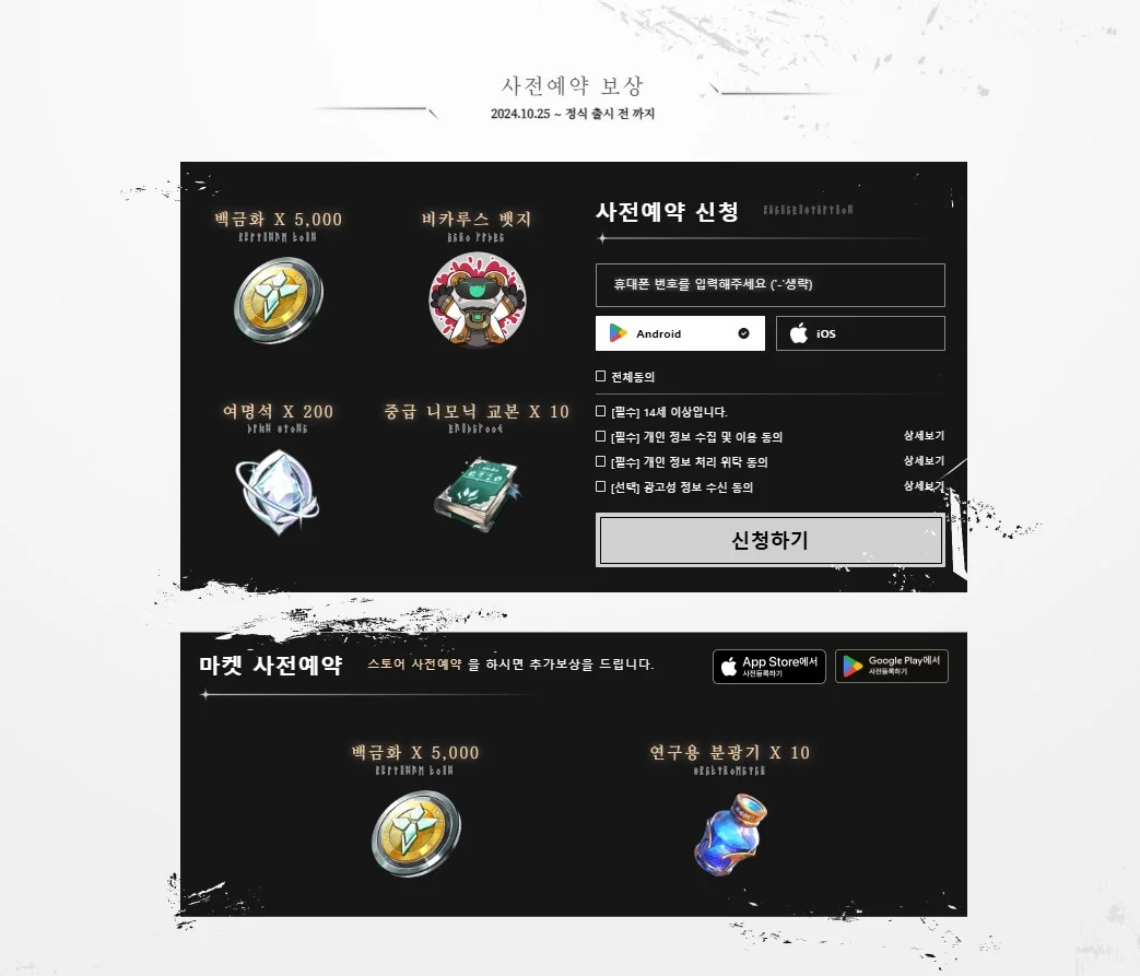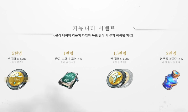 사전예약에 참여하는 모든 사용자에게 다양한 보상이 제공됩니다. 사전예약 보상으로는 5,000 백금화, 비카루스 맨지 아이템, 여명석 200개 등이 포함되어 있습니다. 이 외에도 특정 인원 수를 달성할 경우 추가 보상이 지급되는 이벤트도 진행되고 있습니다.