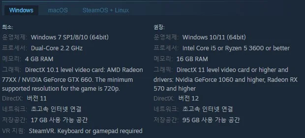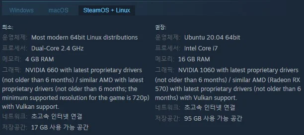 SteamOS + Linux 이용시 요구 사항