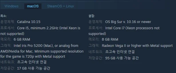 MAC OS 이용시 요구 사항