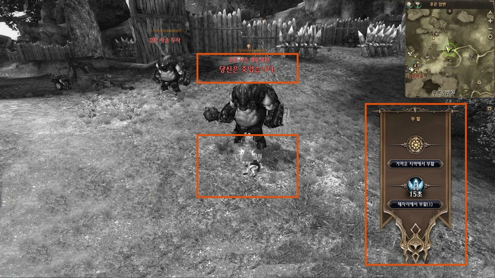 열심히 퀘스트와 사냥을 하다 보면 간혹 센 몬스터를 만나거나 급박한 전투 상황으로 인해서 캐릭터가 죽는 경우도 생기게 됩니다. 이럴 때는 당황하지 말고 오른쪽 하단에 보면 부활 버튼을 눌러서 근처 사냥터에서 다시 부활을 하면 됩니다. 그리고 프리그의 부활석을 가지고 있는 상태라면 20초 이내 프리그의 부활석을 소모하여 제자리에서 즉시 부활을 할 수 도있습니다. 하지만 20초가 지난 경우에는 죽은 지점과 가장 가까운 지역에서만 부활할 수 있습니다. 만약 가장 가까운 마을에서 부활을 했을 경우에는 현재 착용하고 있는 장비들의 내구도가 감소하며 상점에서 언제든지 내구도 수리가 가능하니 잊지 말고 수리하길 바랍니다.