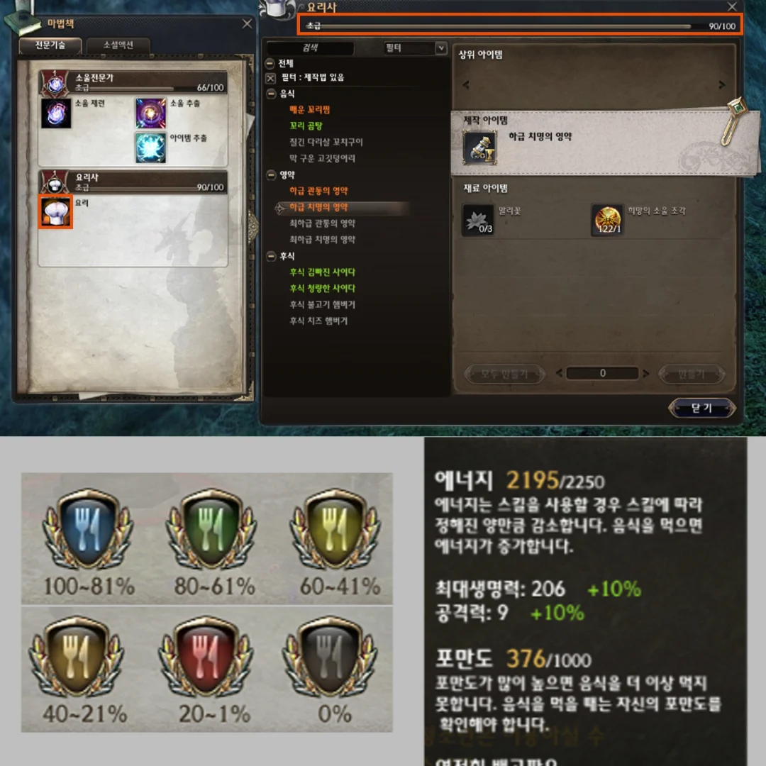 그리고 각 마을에서 배운 제작법들은 레벨과 제작숙련도가 조건에 만족해야 배울 수 있습니다.