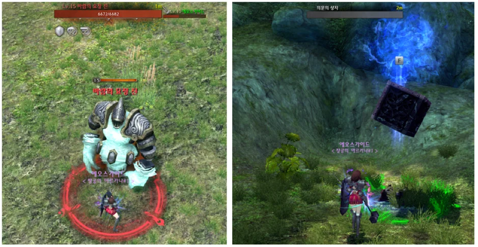 EOS The Blue는 게임 플레이 도중에 가끔 생명력이 매우 높은 협력 몬스터를 만나거나 판도라의 상자처럼 생긴 박스에서 무엇이 나올지 모르는 의문의 상자들을 볼 수 있습니다. 특히 협력 몬스터의 경우에는 혼자 사냥을 하기에는 벅찰 수 있기에 주변에 플레이어들과 같이 사냥을 하는 걸 권장드립니다.