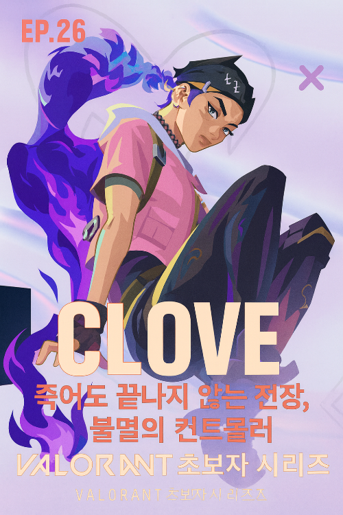 Clove(클로브)는 발로란트에서 유일하게 “죽은 뒤에도 다시 움직일 수 있는 컨트롤러”입니다. 다른 컨트롤러들은 생존을 유지해야 연막을 깔 수 있지만, 클로브는 쓰러진 뒤에도 짧은 시간 동안 돌아와 연막을 다시 깔거나, 마지막 한 번의 교전을 이어가는 능력을 갖고 있습니다.